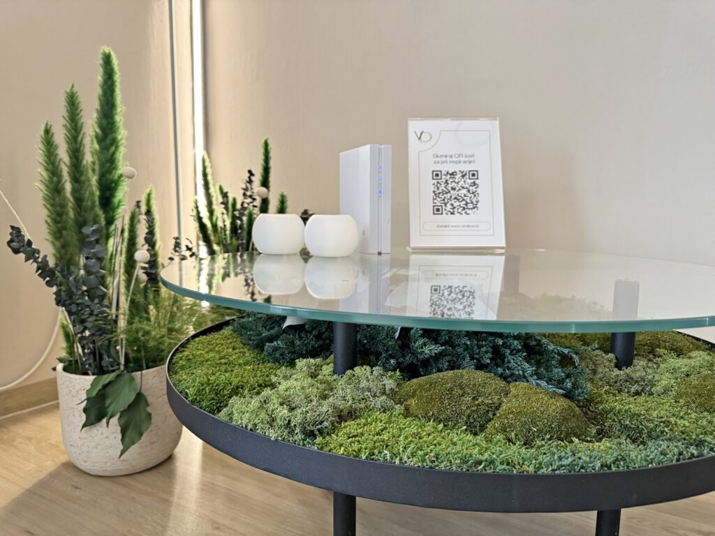 U showroomu je sve posloženo kako bi vam olakšalo zamišljanje konačnog izgleda prostora. Osim stabiliziranog zelenila za interijere, u ponudi imamo i umjetno zelenilo za eksterijere, čime naše projekte prilagođavamo vašim uvjetima.